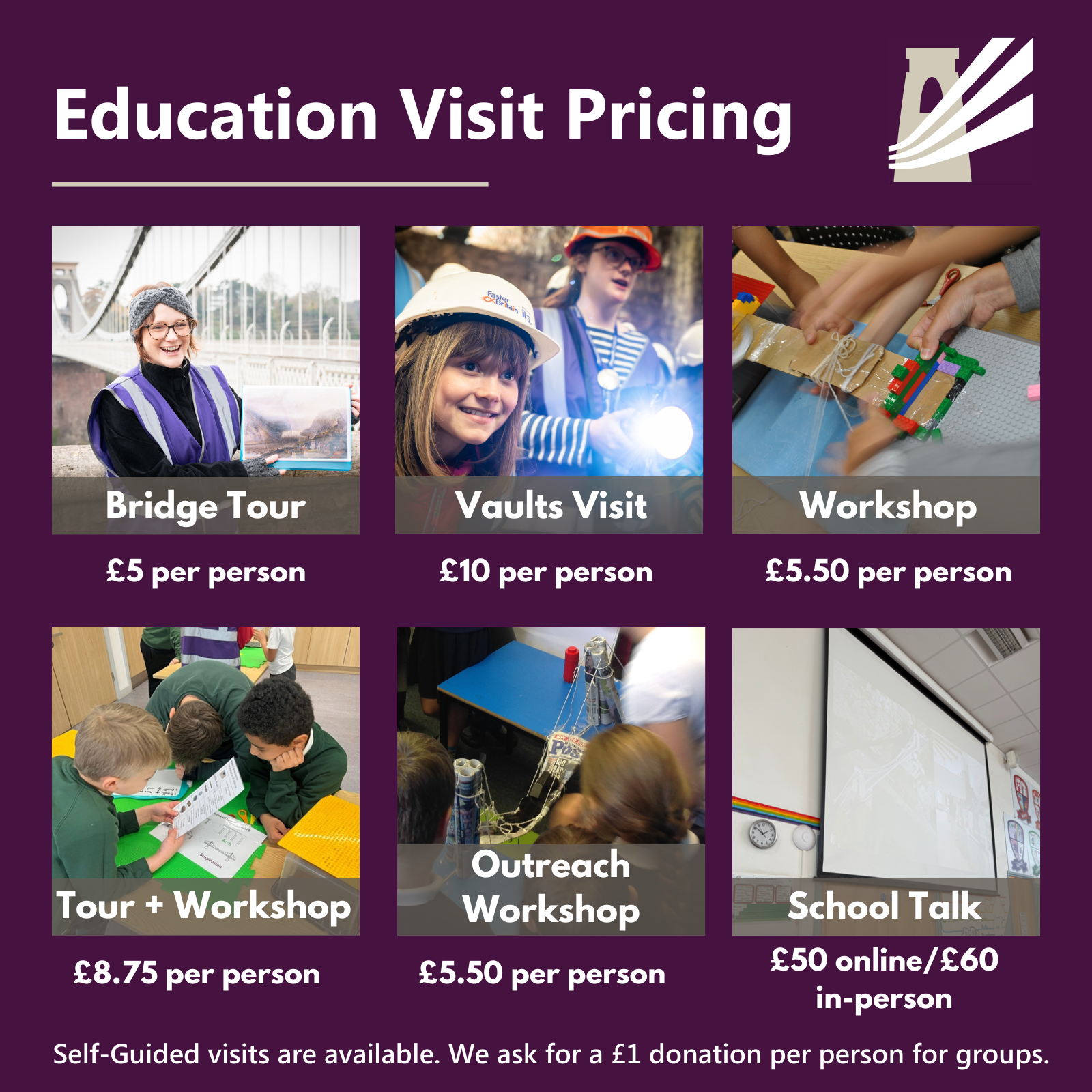 We offer a wide variety of tours tailored to school groups of all ages, from Early Years to A-Level. Led by our White Badge qualified Learning Facilitators, tours explain the history, construction and maintenance of the bridge and share the stories of those connected to it in the past.