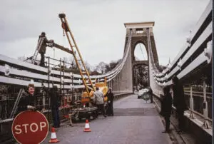 Deciding to permanently remove part of the bridge was a serious decision; so, why were the tests needed? Since the early 1970s, engineers had been concerned about the fracture toughness of wrought iron as well as how well the bridge could cope with fatigue. This was in part prompted by the Point Pleasant Bridge (or Silver Bridge) collapse of 1967, which was shown to be caused by the brittle fracture of an eye bar chain link. While the Point Pleasant Bridge was made of steel – not iron – a wrought iron bridge had collapsed in 1956 in Ireland and numerous ship’s wrought iron anchors were known to have failed. To what extent were the chains of Clifton Suspension Bridge susceptible to similar weaknesses?
