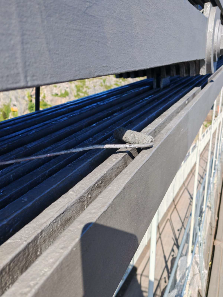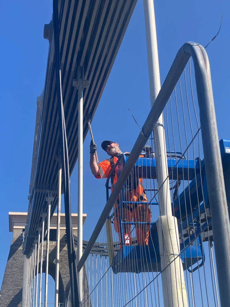 The most important job has been to complete the snagging on the painting works, and the team have been working their way along the bridge looking for any ‘touchpoints’ (parts of the chains that could not be accessed when scaffolding was in place) to add the final coats of paint to them. To complete painting on the lowest part of the chains in the middle of the bridge, a new freestanding scaffolding platform is being erected, with some painting taking place from the roadway, using a mobile platform.