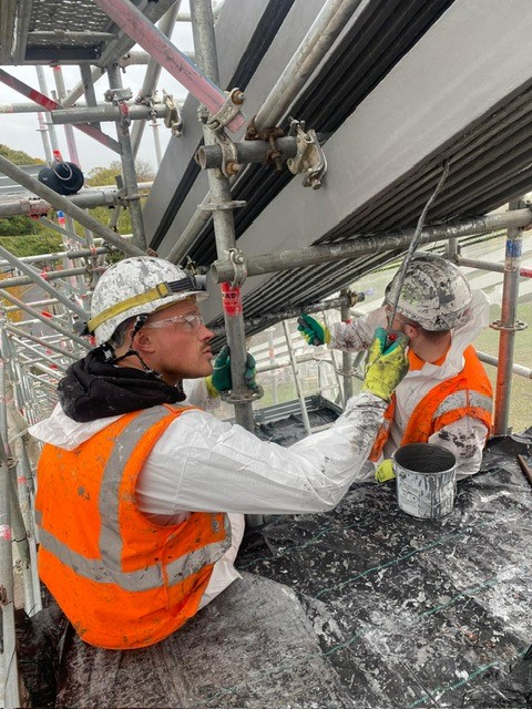 Along the length of the footway, preparation works on the parapet fence have been completed, and the painting team has been focussing on removing any contact points (where other materials such as connections for safety lines join the structure) to ensure that every single part of the ironwork has been properly coated. It’s this attention to these small details that are paramount!